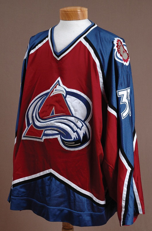 Ranked near the top of the greatest goaltenders in NHL history, Patrick Roy won Stanley Cups for both Montreal (2) and Colorado. From his 1996-97 season in the Mile High City , we offer his game used Avalanche Strater mesh size 58-G jersey. The jersey has tailor cut sleeves made specifically for Roy. Hem tag reads 58G-2LS11. Jersey bears numerous puck and stick marks on the chest and crest. Nice pilling from his blocker rubs, light pilling inside and rust on the fight strap grommets. As nice an “Aves” Roy jersey as you will ever find. Came from Hurricanes Trainer Skip Cunningham’s personal collection. LOA from Spirit of the Game.