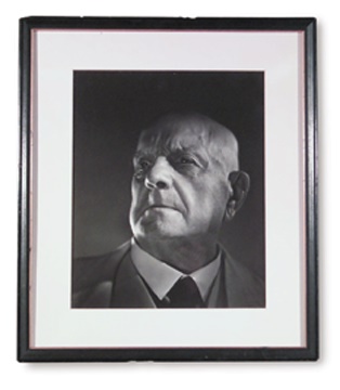 Vintage photograph by this preeminent world portrait photographer. Circa 1941. This is one of the few vintage prints of his trademark work extant. Depicts the Finnish composer Jean Sibeluis in this amazing contrast of light and shadow. It rests in its original vintage matte & frame. The back of this gallery print is perfectly stamped "Copyright by Karsh" with his Ottawa, Canada copyright. At bottom center is written in Karsh's own hand "Jean Sibeluis." Karsh's prints sell for up to $50,000. Photo itself is 11x14", vintage frame overall 16x19". EX-MT.