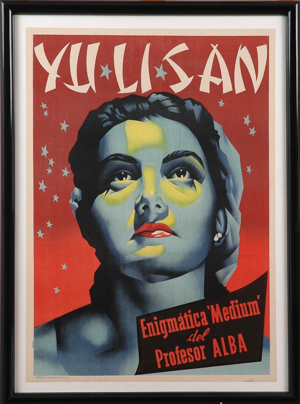 From Spain, this dates from the 1950s but look 1930s. This is a medium who hypnotized and eroticized. Framed to 23 1/2 x 31 1/2".