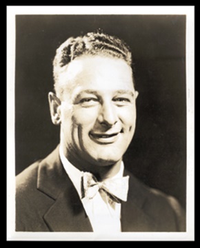 Formal portrait is dignified, regal, elegant, refined and polished. All of these words could be used to describe the appearance of the Iron Horse in this photograph with his soft smile and bow tie. Dazzling image of Lou in his Sunday Best. NRMT. 8x10". Ex-Barry Halper Collection.