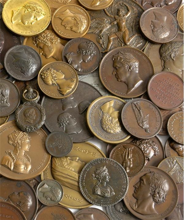 the 19th Century and dedicated to Napoleon Bonaparte and the Napoleonic era. Most are cast in bronze in various sizes ranging from U.S. dime size to 3" diameter (average 2"). The detail of the castings is awesome. There is also period coinage. The bulk of the collection was passionately accumulated in the 1970-80's. Some are post second empire restrikes. Additionally, there are a number of original casting molds. It is a
