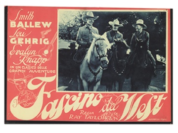 The Yankee first baseman's Hollywood debut crosses the pond to the delight of Italians everywhere. And that's Lou in the center of the photo, trading in his ball cap for a Stetson. EX.