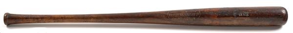 Considered to be the best fielding first baseman of all-time, Hal Chase is best remembered as an unsavory character whose entire career was spent under a cloud of suspicion. Accused of throwing games throughout his many years, he was able to beat the charges until finally he was banned for life after the 1919 Black Sox scandal. Hal was not done with baseball though, and the Pacific Coast League, always looking for a draw, welcomed him with open arms. It was during that time that he would swing this personal Model Hillerich & Bradsby bat which measures 37" and weighs an astounding 39.8 oz. The front of the barrel is stamped with his block letter name, "CHASE", while the reverse is side-written in black marker that has since become almost illegible. The one segment that is distinguishable reads, "6-23", which indicates the date the bat was returned to the factory. Overall, this specimen's use can be described as exceptional, with an assortment of cleat dents, scuffs, and scrapes acquired prior to the bat's retirement due to a minor crack to the midsection. Futhermore, mild separation along the backside on the barrel has been repaired with a pair of small nails. A rare example from one of the game's most unforgettable and infamous characters.
