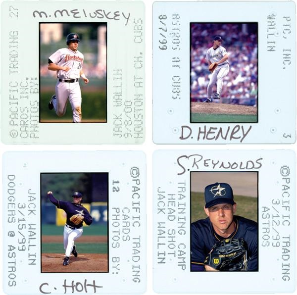 This is a marvelous collection of original negatives taken by one of the Donruss baseball card company’s top photographers for use on their baseball cards. The quality is exceptional and in full color. These are all Houston Astros players from the 1980s to early 2000. There are over 3500 negs here in slide format. The top players include Albert Pujols, Matty Alou, Bagwell, Biggio, Niekro, Caminitti and more. NRMT condition.