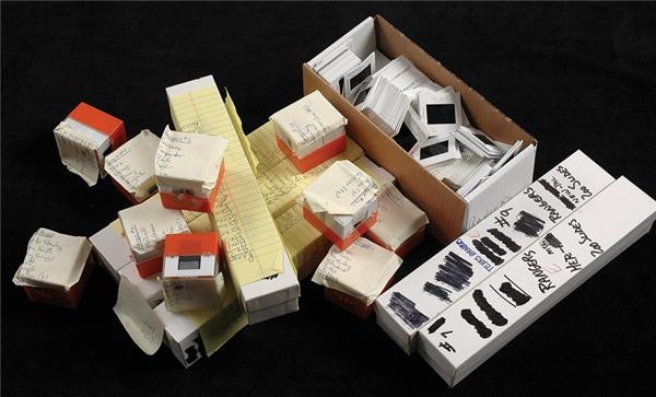 Over 4500 slides! All are from a top Donruss photographer for use in their baseball card sets. Covers the time period between 1980 and 2000. All of the big names are here: Nolan Ryan, Canseco, Zimmer, Franco, Gossage, Scioscia, McDowell, Guzman, Franco, Madlock, Dent, Jeffcoat, Nixon, Palmeiro, Rogers, Poole, Sundberg, and more. NRMT.