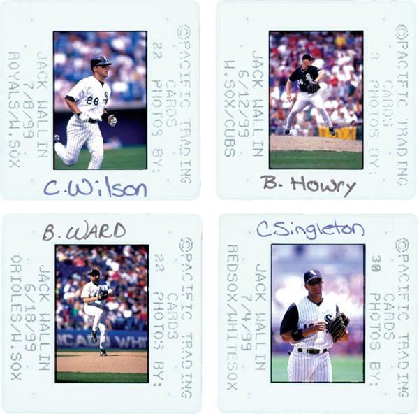 Spectacular collection of original negatives were done by a Donruss photographer for their baseball cards. By a top lensman, the quality is exceptional. These are all Chicago White Sox players and there are over 6200 full color negatives here in slide format. Some of the top players include Carlton Fisk, Guillen, Bo Jackson, Albert Belle, Tom Seaver, Bonilla, Jim Abbott and many more. NRMT and perfect for publication purposes.