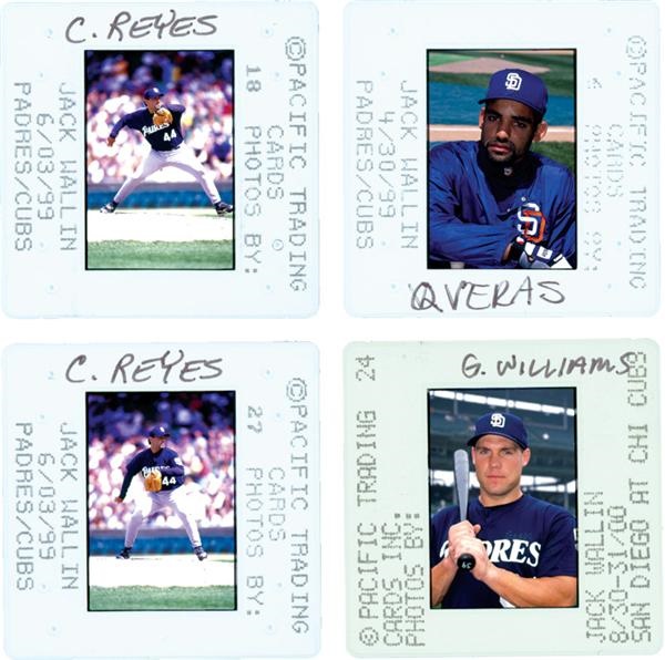 Spectacular collection of original negatives was done by a Donruss photographer for their baseball cards. By a top lensman the quality is exceptional. These are all San Diego Padres players and there are over 2900 full color negatives here in slide format. Some of the top players include Caminitti, Gwynn, Henderson, McGriff, Nettles, Valenzuela, Tewksbury, Gossage, Garvey, Bell and many more. NRMT and perfect for publication purposes.