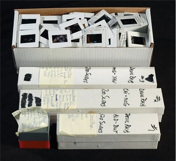 “We come to play,” says the 2006 Tampa Bay Devil Rays, and though these negatives in slide format contained within this collection of over 1,100 capture the Rays at their worst, when the new expansion team started in years 1998-2000, these images contain thrilling views of star players Cairo, Boggs, White, Wilcox, Winn, Sorrento, Williams, Trachsel, Mendoza, Saunders, and Hernandez.