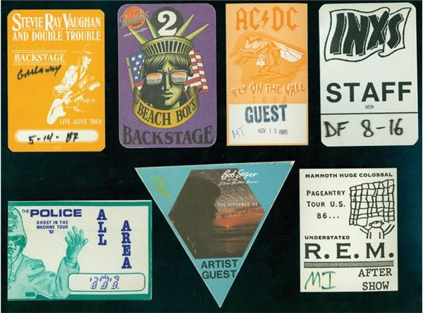 Finally, you can get backstage. Concert tickets and backstage passes to some of the greatest acts of the 80's. Lots of big names here, including The Police, AC/DC, The Beach Boys, Bob Seger and the Silver Bullet Band, INXS, R.E.M., Stevie Ray Vaughan and Double Trouble and loads more.
