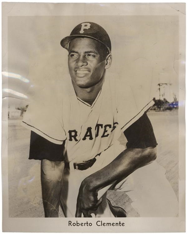 The Clemente team photo that accompanied the January 1, 1973 article announcing his untimely death. Original press clipping. EX+. 8x10”.