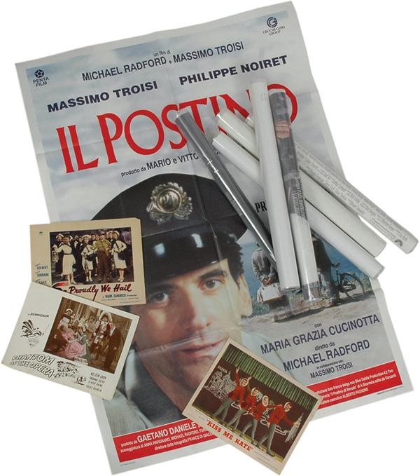 A sensational collection of single sheet posters, lobby cards, and other cinema related ephemera highlighted by a 1958 "Cat On A Hot Tin Roof" specimen (27x42", light restoration, otherwise Fine, linen backed) and an "Annie Hall" example signed by director Woody Allen and Diane Keaton. Over thirty pieces in all, including posters such as: The Postman Always Rings Twice, War of the Roses, Forest Gump, The World Is Not Enough, Batman, Pulp Fiction, Good Bye Lover, and Mad City. Lobby cards: Kiss Me Kate (1953). Autographs: James Stewart and Burl Ives. Most of the modern pieces are Mint, with the older ones averaging Fine-Very Fine.