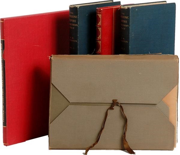 1) 1904 The Napoleonic Empire in Southern Italy and the Rise of the Secret Societies, by R. M. Johnston. 2 vols. A number of fine b&w maps, foldouts, some colored. Cloth. Fine+. 2) 1798 Campaign of General Bonaparte in Italy, by a General Officer. Rebound and EX. 3) 1885 A Sentimental Journey Through France and Italy, by Laurence Sterne. Limited to 550 copies. Numerous b&w illustr., including engravings printed one side of heavy stock with OS separators. Softcover in case. Superb color litho cover. VG. 4) c. 1809 Uniformi de ‘Corpi dell’ Armata Italiana. Seven pen & ink images on heavy stock and hand water-colored. From collection of Anne S. K. Brown. VG.