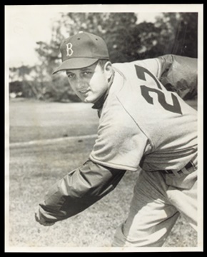 The definitive image of Lasorda is also the most famous. 8x10" with Barney Stein New York Post stamp on verso. April 26, 1956. EX+.