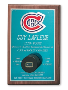 Lot # 42: 1984 1220th Point Plaque Presented to Guy Lafleur (10x15")