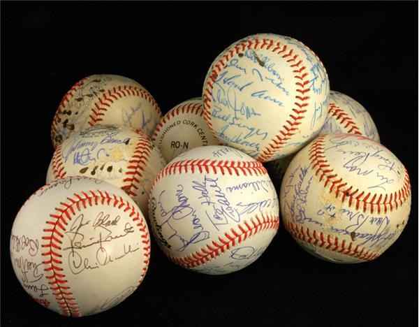 Lot # 41: 1970-80s Team Signed Baseball Lot (8) with Clemente