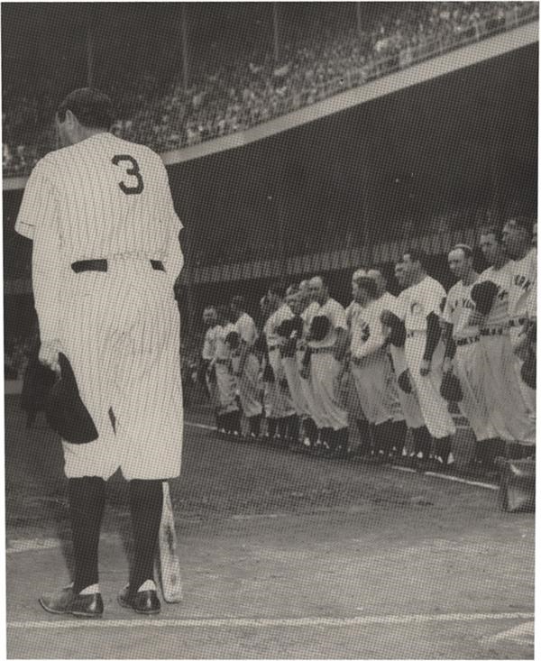 Lot # 158: 1948 "The Babe Bows Out" Babe Ruth Nat Fein Photo