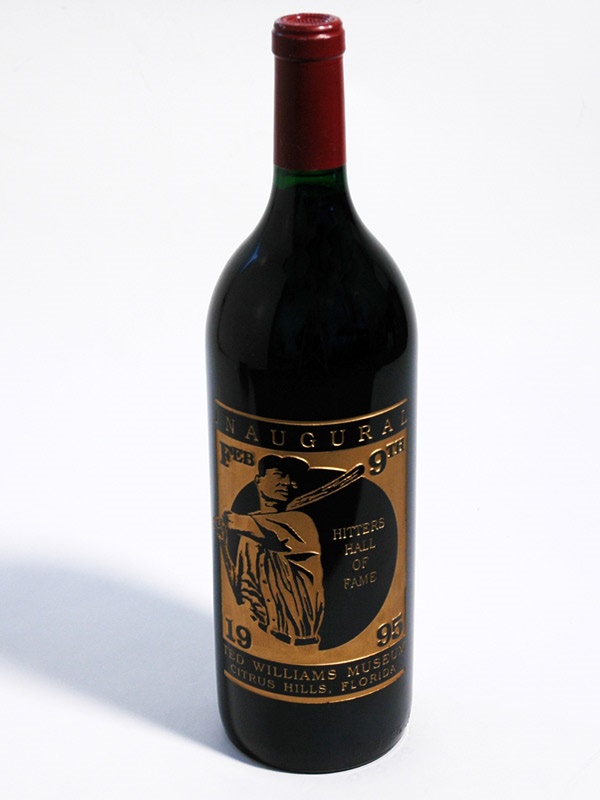 Full bottle of Cabernet Sauvignon created for the Feb 9, 1995 commemoration ceremony for inductees into the Ted William's Hitters Hall of Fame. Limited Edition #11 of 100.