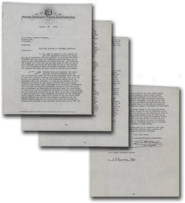 Four page typed contract between MGM and Barnes Amusement Company. Signed on the last page in mint black ink. Fine condition.