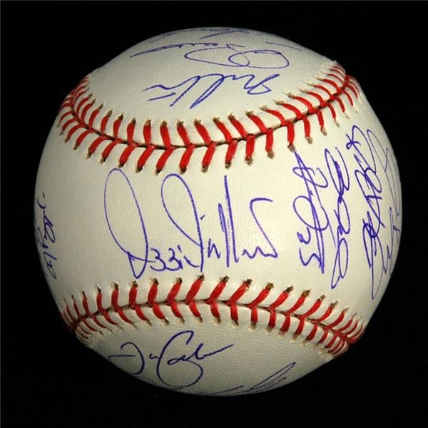 Official World Series Baseball signed by 25 members of this Championship team. Includes Dye (World Series MVP), Konerko, Guillen, Frank Thomas, Beurhle, Anderson, Garland, Hermanson, Garcia, and more. All signatures are in mint blue ballpoint on a snow white ball. MLB hologram affixed as well as PSA/DNA cert.