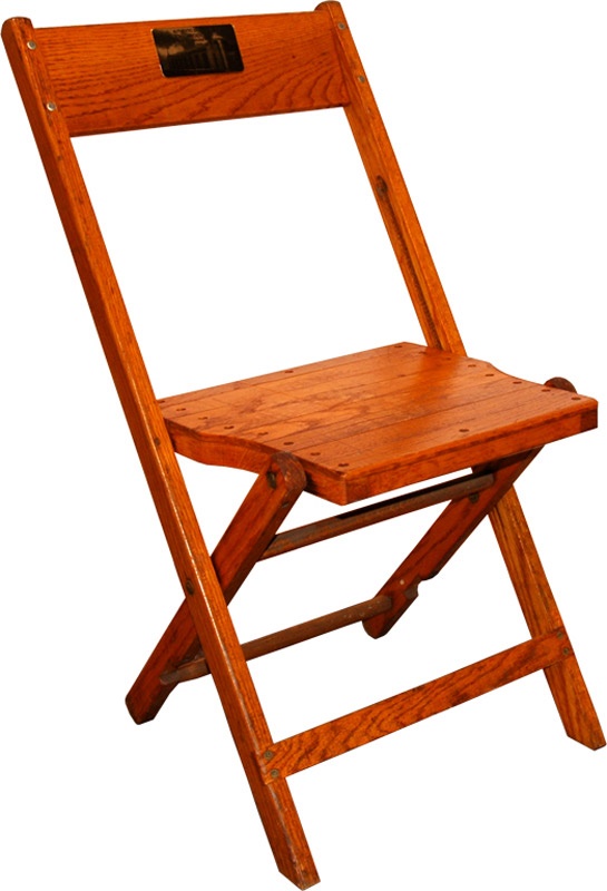 Original wood floor seat from the Boston Garden, home of basketball's Celtics and hockey's Bruins, rescued before the legendary arena was razed in 1997. Chair is a sturdy, folding-style made of hardwood.
