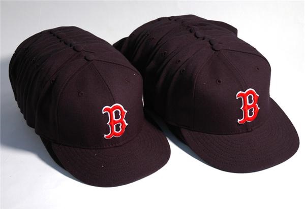 A lot of 22 game issued hats from the Boston Red Sox Labor Day game vs. the