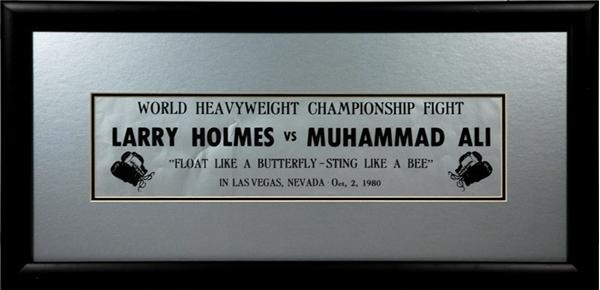 Excellent pair of rare Muhammad Ali bumper stickers. The first promotes the Ali-Holmes fight held on Oct. 2, 1980 and the second is from the legendary boxer's training camp in Deer Lake, PA. Both are EX-MT and nicely framed. The training camp sticker comes with an unused envelope imprinted with the camp's return address.