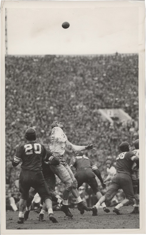 Super shot of the ball in the air after being kicked by Tipton of Duke. Original caption sheet on the verso dated 1-2-39. 7 x 11''. EX-MT.