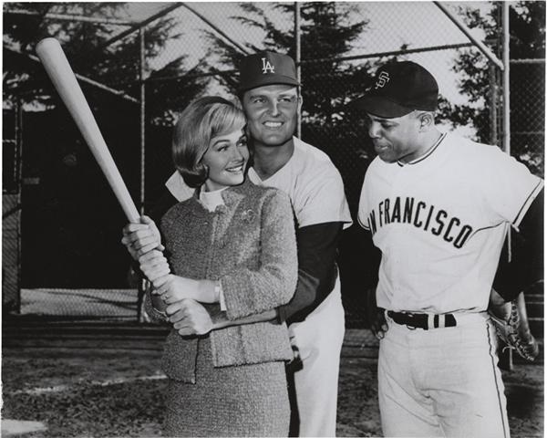 Lot # 203: Willie Mays and Donna Reed Baseball Photo (1964)