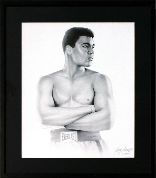 One is a black and white limited edition signed by artist, framed to 25 x 25''. Second is titled "The Greatest", is framed in a shadow box and is number 22 of 100. Artist signed "Rocco 88." Framed to 26 x 30''.