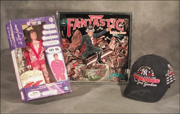 No, it's not a doll that becomes a hat and a mirror. It's an Elton John Official singing character doll made in turn of the century China. Made by Yaboom. If you press Elton's belly button, he'll sing up a storm. Doll includes realistic mike stand.