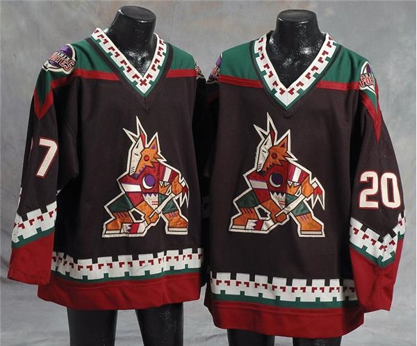 Lot # 625: 1996-97 Cliff Ronning & 1998-99 Jyrki Lumme Phoenix Coyotes Game Worn Jerseys
