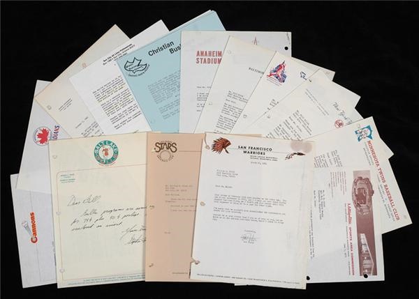 PLUS many personal letters on team stationery from team executives from 1960s – 1970s (a few PCL) over 50 total, most ML teams represented.