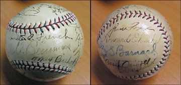 This is one to fight for. Connie Mack's greatest creation has never looked better than they do on this super clean OAL (Barnard) ball. Every signature is strong and easily legible; it's among the nicest balls we've handled from the 1920's. And check out the names: Collins, Grove, Bishop, Simmons, Foxx, Earnshaw, Dykes, Cochrane and Dykes. Twenty-two sig's total. The crown jewel of any collection.