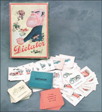 Great Anti-axis game features Benito Mussolini on the cover in full color. Inside are various cards that make this fun for all ages and fascists. Measuring 7x5x1.5", it is Dutch, but the best part is that the title is also in English. 1930's, EX.