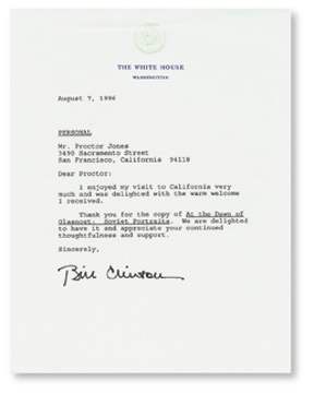 Lot # 1171: 1996 Bill Clinton Signed Letter