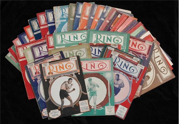 A terrific lot of Ring Magazines dating from the first year (1922) until the 1990's. There are a total of 9 issues from 1922 (April, May, July, August, September-2, October, November, December). Condition varies from PR to EX. There are 12 issues from 1923 (Complete year-VG to EX). There are 21 issues from 1925 to 1928 (ranging from PR to EX). An important lot containing some incredibly rare early issues, particularly in some of the better conditions. The remainder of this collection are modern issues.