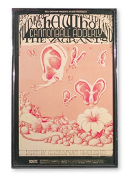 Also known as BG 108 in the Bill Graham series, this concert featured a diverse lineup only Bill Graham could orchestrate - The Who, Cannonball Adderly, and The Vagrants appearing on February 22nd - 24th, 1968 at the Fillmore Auditorium and at Winterland in San Francisco. VG, framed.