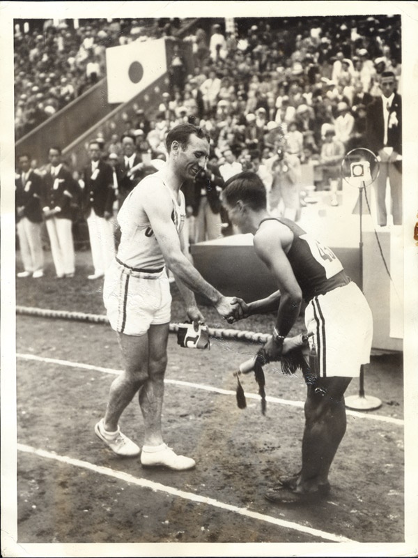 Long considered THE event in running, the mile is a tricky balance of speed and stamina. Glenn Cunningham had that balance mastered. In this collection we see him in a variety of scenarios but mostly doing what he did best: winning. Almost every major he raced in is here. Nothing has been taken out of this amazing lot, it is unpicked and fresh. A literal chronology of the career of Cunningham, one of the greatest track stars of all, is here. Included with some really stunning shots of him running are great photos with his family. All are vintage; all are scarce if not rare. Sizes vary but most are 8.5”x11” and overall EX+.