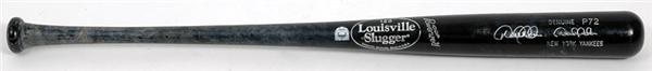 Hitting champ Derek Jeter played in his 5th All-Star game in 2002, the same year this black bat was handled by the All-Star MVP of two years prior, and 4-time World Series titlist with his late-90’s dominating New York Yankees. This ebony club is a Louisville Slugger model P72, has silver lettering, and shows tons of use with Mota-stick on the handle and deep ball marks on the barrel. Signed in 9/10 silver Sharpie on the barrel. MLB hologram affixed to the right of the center brand. Comes with a hand signed LOA from Derek Jeter.