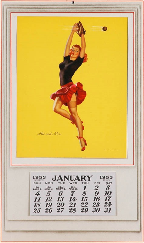 10 x 17'' with complete 1953 year calendar attached. Pin-Up print is titled "Hit and Miss." NM-MT.