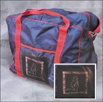 A nylon zippered crew bag from Bruce's 1981 U.K. Tour. Slightly road worn, overall VG.