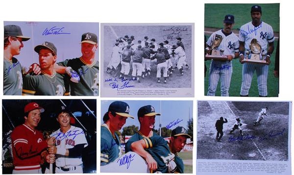 All are 8 x 10'' photos. Includes Johnny Bench / Carl Yastrzemski, Don Mattingly / Dave Winfield, Bobby Thomson / Ralph Branca, Tom Henrich / Mickey Owen, and two photos signed by Mark McGwire, Jose Canseco and Walt Weiss. Mint.