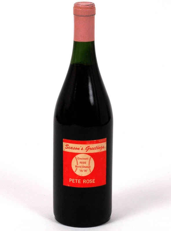 Lot # 48: Pete Rose Season's Greetings Cincinnati Reds World Champions Unopened Bottle of Wine