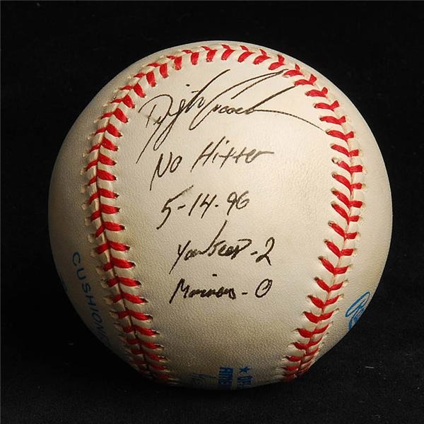 Official American League Budig game ball signed in black ink by Dwight Gooden with the inscription "No Hitter 5-14-96 Yankees-2 Mariners-0." Ball shows no use.
