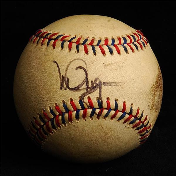 Official Rawlings Olympic Game Used Ball signed on the sweet spot by Mark McGwire. Signature is bold, ball is toned from game use.