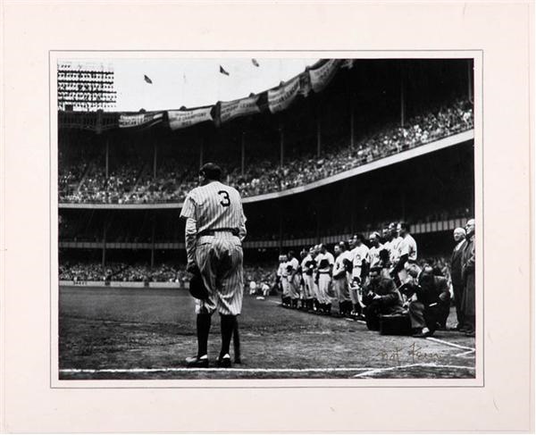 Tough to find signed print made from the original negative by Nat Fein and signed by Fein in gold in the lower right corner. Made a few years before Fein's death. One of the most famous of all Baseball images. Mint.