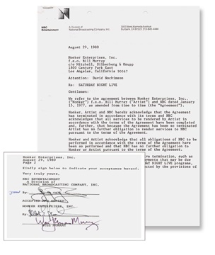 From this brilliant comedian and actor's stint with this equally brilliant show. Mint signed by "Wm. James Murray" and NBC. Contract is EX+.
