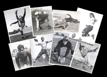 Tremendous collection of seventy original, 1st generation football wire photos. From the Scripps-Howard's famed NEA/Acme Archive. These were culled from thousands of football photos and were handpicked based on their images. They exhibit perfect contrast, artful composition and are by such brilliant photographers as Herman Seid. Vast majority date from the 1930's. Many have original paper captions and stamped NEA/Acme collection. Vast majority are college with Michigan State, Mississippi, Oregon, Georgia, Texas Aggies, Pittsburgh, Ohio State, USC, Fordham, Wisconsin, Idaho, Illinois, Minnesota, Carnegies Tech, Missouri, Purdue, Baylor, Iowa, Northwestern. Mostly 7x9", overall EX, quality is A-1.