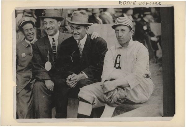 5 x 7'' photograph of Eddie Collins posed with Ty Cobb and another player. Taken by noted photographer George Grantham Bain. Mounted to archival paper for preservation and protection. Excellent.