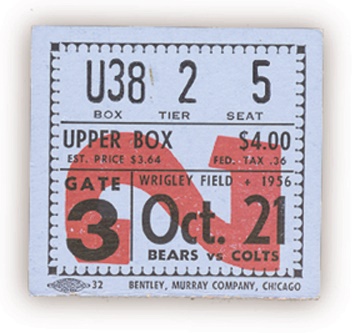 The first game ever in which this Baltimore Colts legend appeared. October 21, 1956 versus the Chicago Bears. EX-MT.